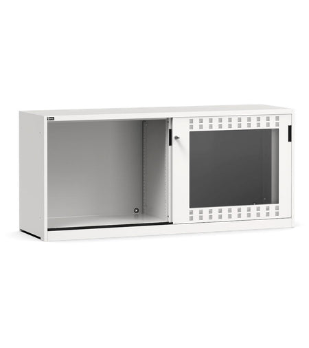 Der Leerschrank mit Schlitzschiebetüren und Polycarbonateinsätzen stellt eine professionelle, sichere und belüftete Lösung zur Aufbewahrung von Werkzeugen, Geräten, Elektrogeräten oder technischen Materialien in Industrieumgebungen, Werkstätten oder Lagerhallen dar.