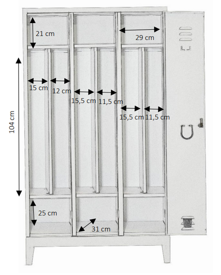 • Denominazione: Armadio spogliatoio sporco/pulito a 3 posti