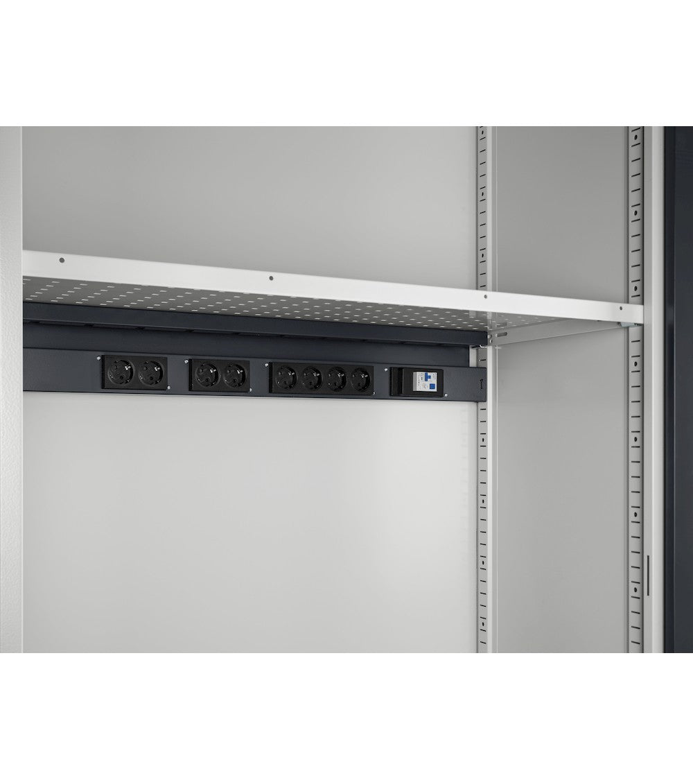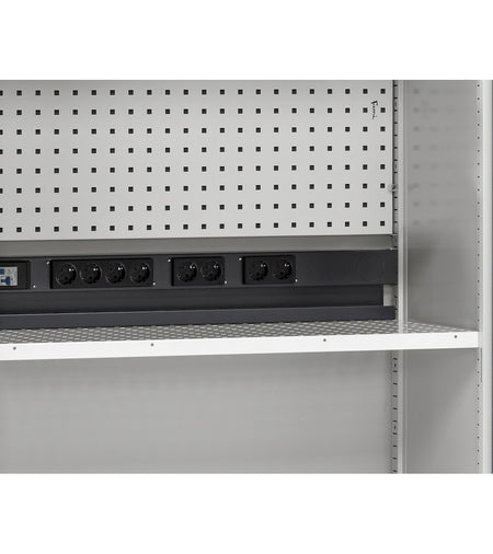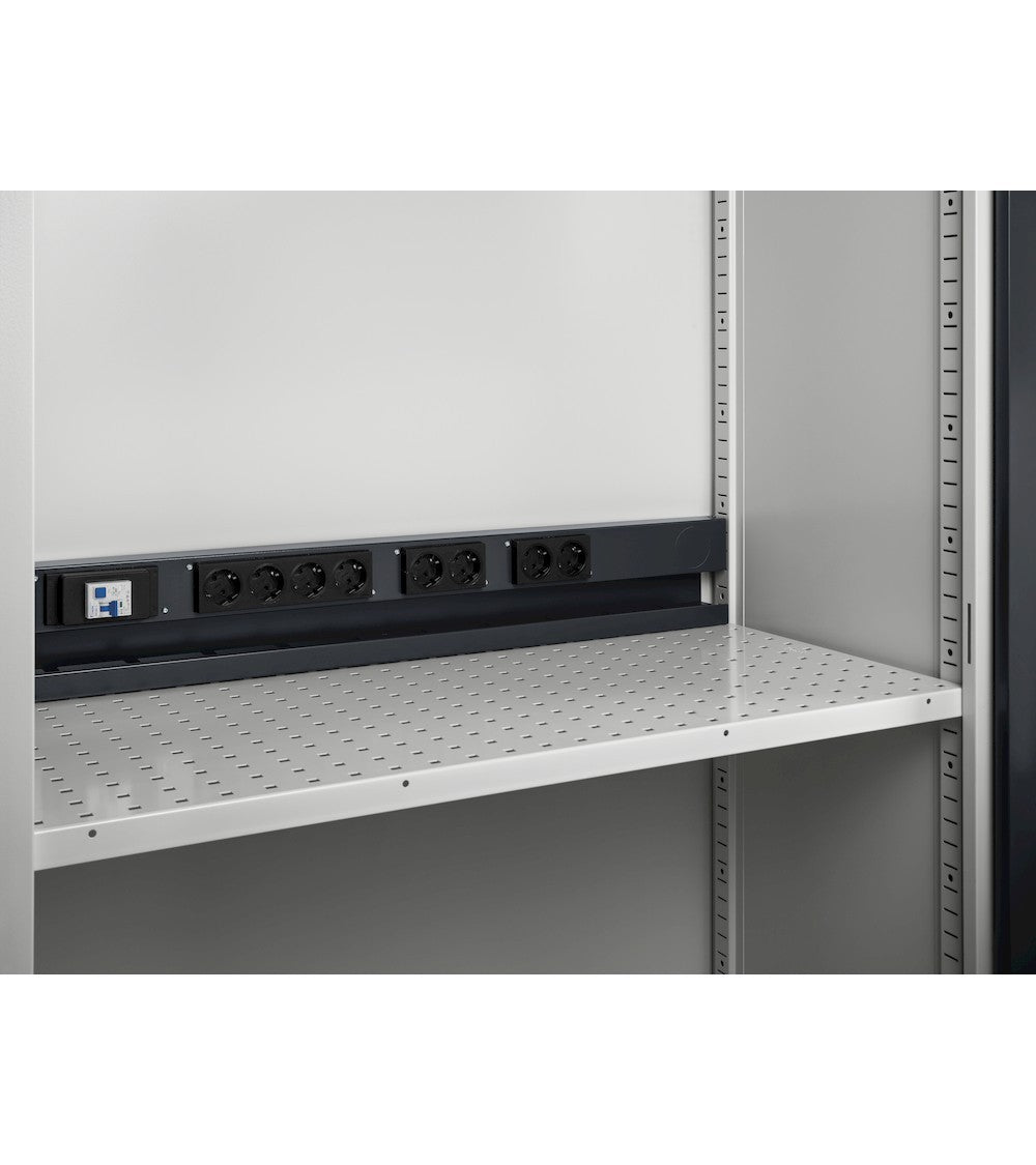Der Stromkanal für Mehrfachsteckdosen ist die wesentliche Komponente, um den Perfom-Mehrzweckschrank in eine echte zentrale Ladestation zu verwandeln, ideal für professionelle Umgebungen, in denen eine geordnete und sichere Verwaltung der Stromversorgung erforderlich ist.