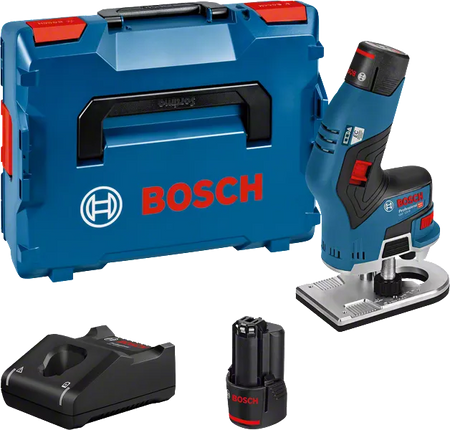 Der Akku-Trimmer GKF 12V-8 ist zum Fräsen von Holz und Kunststoff konzipiert. Das Gerät ist mit allen 12-Volt-Akkus und Ladegeräten von Bosch Professional (Professional 12V System) kompatibel.