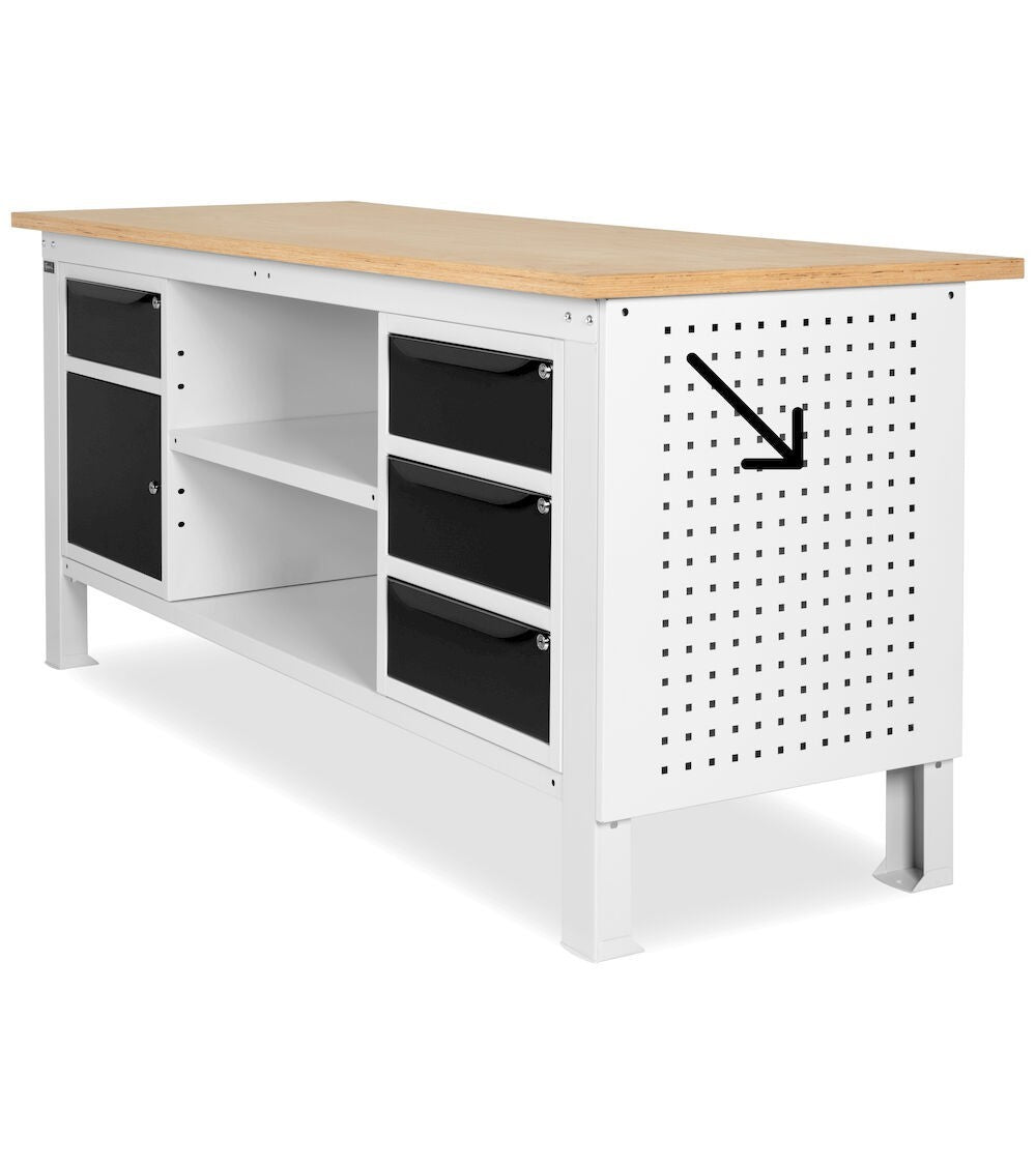 Die Stecktafel mit quadratischen Löchern ist ein praktisches und funktionales Zubehör, mit dem Sie die Seiten Ihrer Werkbank in eine Aufbewahrungswand verwandeln können. Kompatibel mit Systemen wie Iron Team, Unipok und anderem Organisationszubehör können Sie Werkzeuge und Geräte ordentlich und immer griffbereit aufbewahren.