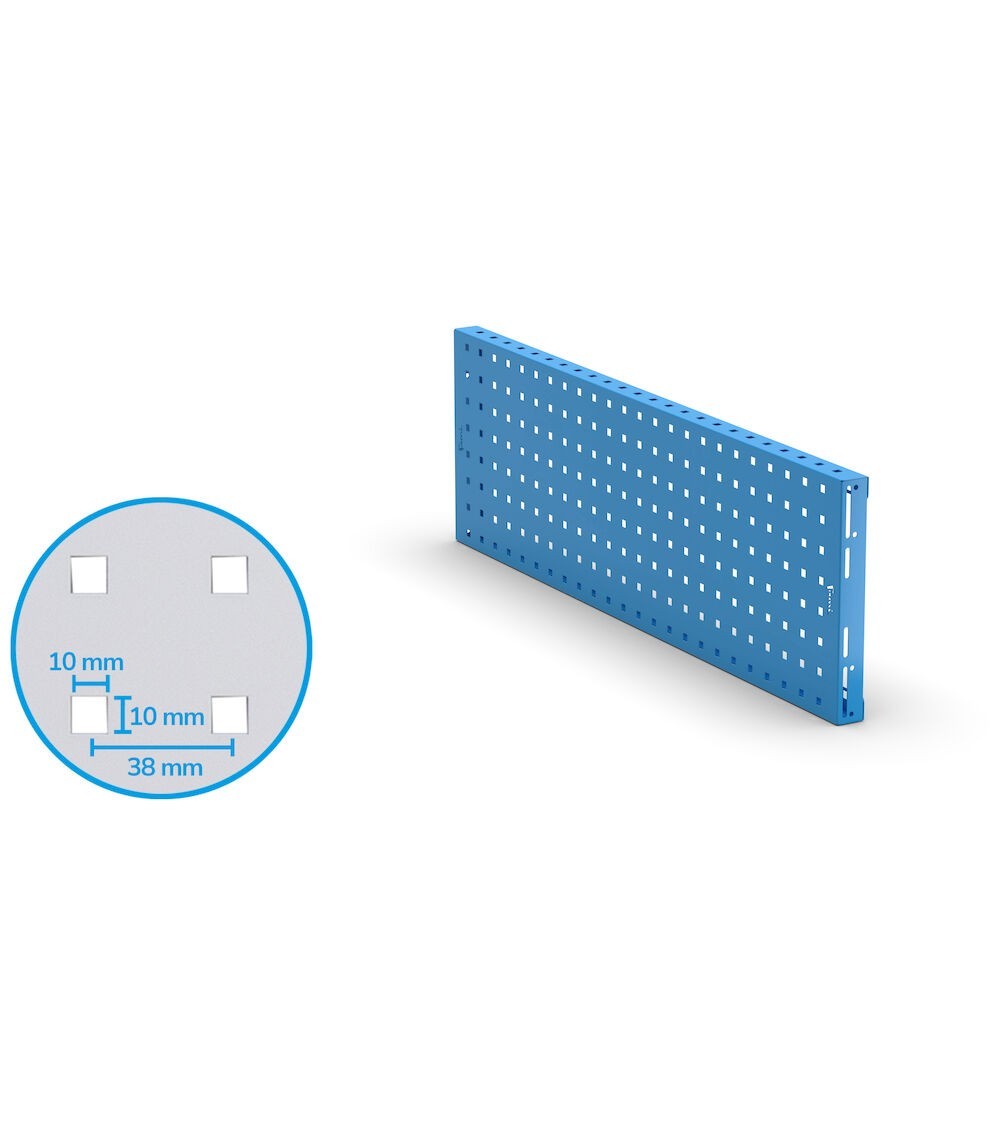 Das Paneel verfügt über einen Lochabstand von 38 mm und ist daher mit verschiedenen Werkzeughaltersystemen und speziellen Haken kompatibel. Dank seiner Tragfähigkeit von 25 kg garantiert es Robustheit und Zuverlässigkeit für die Aufbewahrung von Werkstatt- oder Laborgeräten.