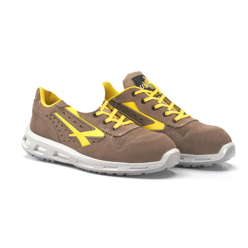 U-Power Sicherheitshalbschuhe der Red Lion Linie, leicht und bequem, mit Obermaterial aus weichem, atmungsaktivem, perforiertem Wildleder und Zehenschutzkappe aus Aluminium . Ausgestattet mit Durchtrittschutz , Rutschfestigkeit und PU/PU Infinergy- Sohle. Entspricht der Norm EN ISO 20345:2011 , Schutzklasse S1P SRC ESD .