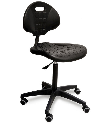 Ausgestattet mit 5 Lenkrollen lässt sich dieser Arbeitsstuhl leicht im Arbeitsbereich bewegen und eignet sich daher perfekt für Labore, Werkstätten, Fließbänder und Industrieumgebungen . Die hochbeständige Polyurethanbeschichtung macht ihn langlebig, leicht zu reinigen und selbst für die anspruchsvollsten Umgebungen geeignet.
