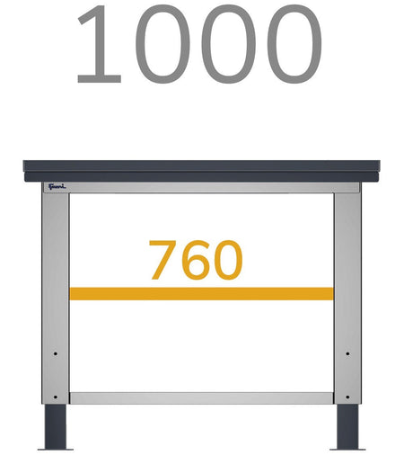 Im Vergleich zu einem herkömmlichen Tisch bietet der Halbtisch mehr Freiraum darunter, sodass der Bediener im Sitzen arbeiten und eine ergonomische Haltung einnehmen kann. Mit einer Tragkraft von 100 kg gewährleistet er Stabilität und Zuverlässigkeit auch bei mittelschweren Materialien.
