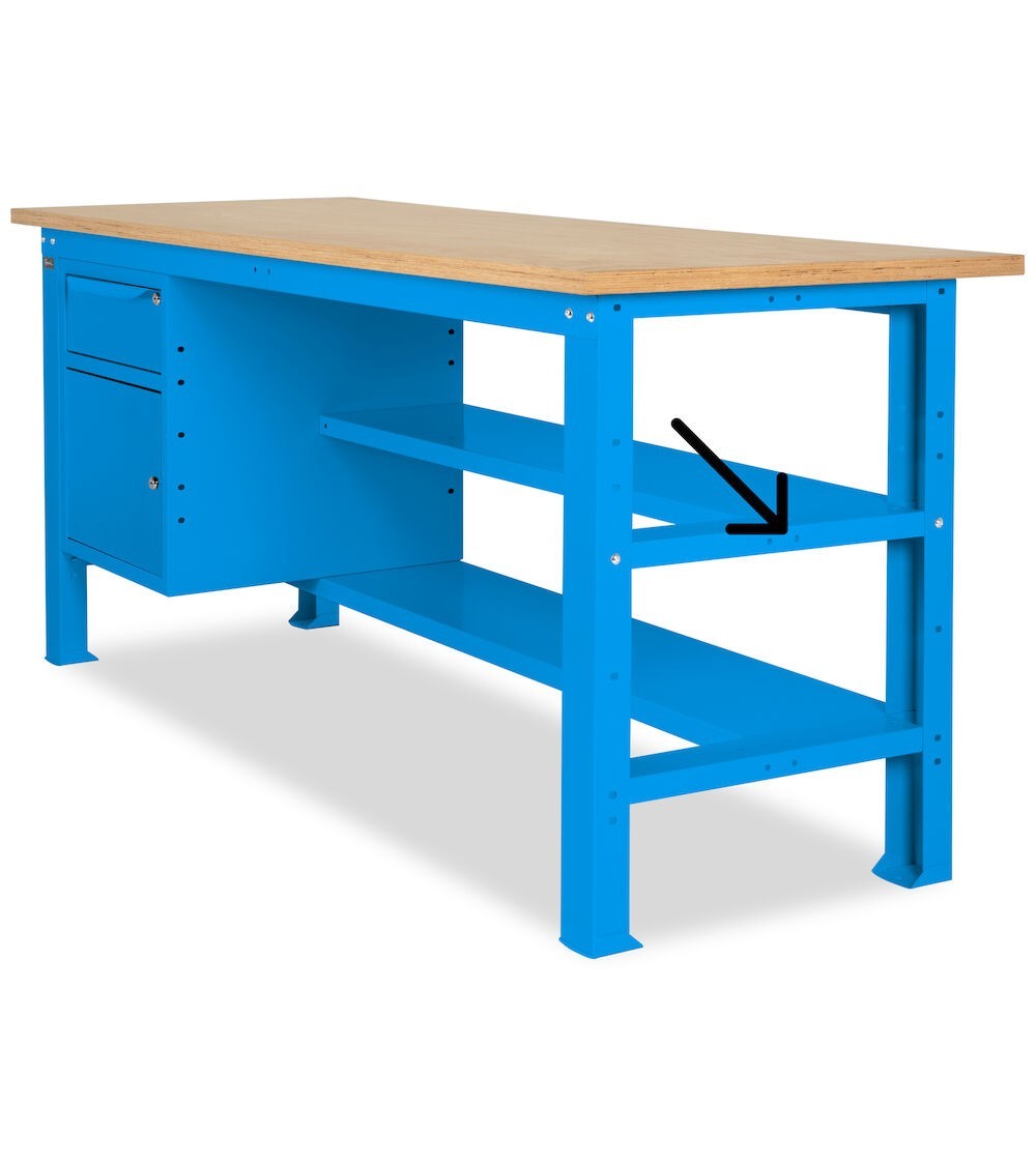 Die Stütze ermöglicht nicht nur die Installation der Halbplatte, sondern trägt auch zur Verstärkung des unteren Teils der Bank bei, wodurch diese stabiler und langlebiger wird und sich ideal für den intensiven Einsatz in Werkstätten, Laboren und Produktionsumgebungen eignet.