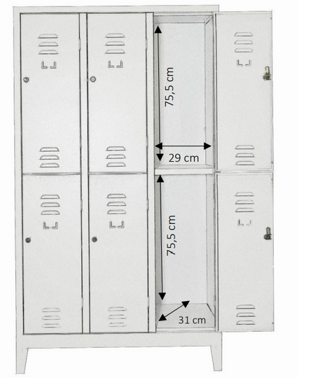 Realizzato in acciaio DC01 con spessore 0,6 mm, è dotato di struttura monoblocco con bordi arrotondati, ante rinforzate con feritoie di aerazione superiori e inferiori, porta cartellino stampato e serratura a chiave per garantire sicurezza e organizzazione.