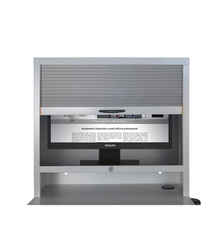 Das Rollladenmodul Master CS ist eine praktische und sichere Lösung zum Schutz von PC-Bildschirmen bis zu 24 Zoll in Industrie-, Logistik- oder Produktionsumgebungen. Dieses mit der Master-PC-Station kompatible Modul ist für die direkte Nutzung von Touchscreens konzipiert und gewährleistet Zugänglichkeit und Schutz in einer einzigen kompakten Struktur.