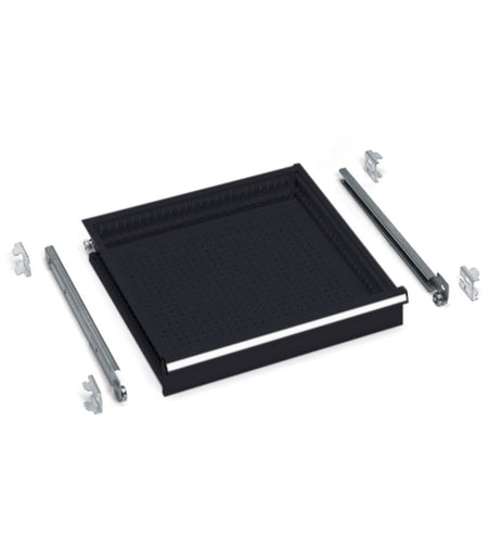 Die Schublade mit Einzelauszug ist die perfekte Lösung für die geordnete Aufbewahrung kleiner und mittelgroßer Werkzeuge, Materialien und technischer Dokumentation. Dank ihrer kompakten Struktur können Sie den Schrankinhalt effizient organisieren, Unordnung vermeiden und das Risiko von Verlust oder Beschädigung der gelagerten Gegenstände verringern.