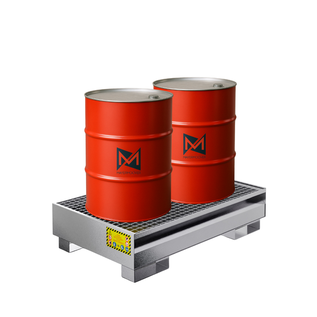 Der feuerverzinkte Sammeltank von Mayermoover ist für die Aufnahme von zwei 200-Liter-Fässern ausgelegt und stellt eine leistungsstarke Lösung für die Lagerung umweltschädlicher oder gefährlicher Flüssigkeiten in Umgebungen mit besonders rauen Bedingungen dar.