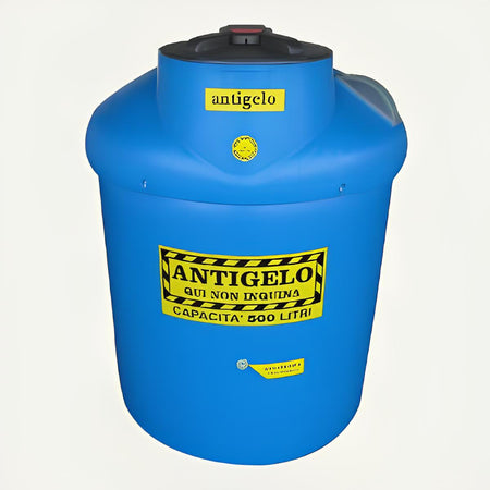 Product Description: Series of patented containers for the separate collection of used antifreeze. Made of polyethylene, light blue in colour, with a built-in safety tray (double container). They are equipped with a removable and sliding square-shaped filter basket incorporated into the hatch, protected by a rectangular lid for the insertion and extraction of used antifreeze.