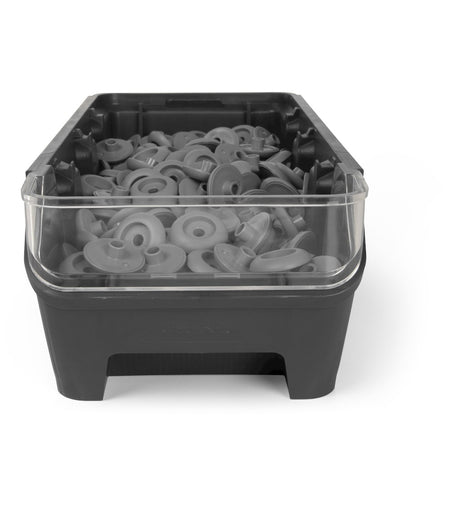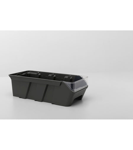 The front panel for the RK Box Air is used to close the front of the shelf containers. It adapts perfectly to the shape of the RK Box Air, and its transparency ensures the contents are always clearly visible without having to remove the small parts container from its storage location. When used in combination with the lid, it creates a complete seal, preventing the accumulation of dust and dirt and the spillage of materials during handling of the shelf container.
