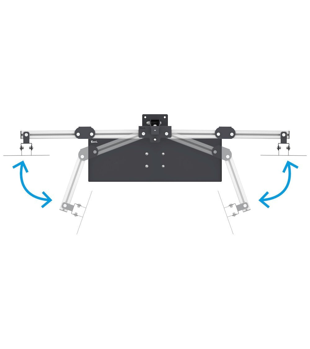 The vertical upright is installed directly on the floor and is equipped with a height-adjustable anodized aluminum profile , on which a monitor arm with double VESA plate is fixed. The extendable arm allows you to adjust the orientation and distance of the screens, offering maximum freedom of positioning based on the user's ergonomic and operational needs.
