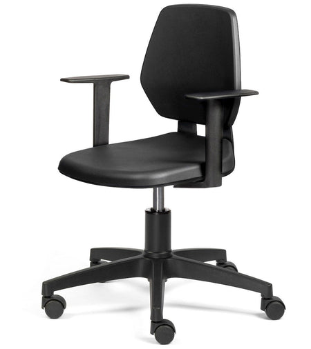 The work chair with wheels and armrests is an ergonomic solution designed to ensure comfort and functionality in industrial workstations, laboratories and production departments. The polyurethane seat and backrest , in addition to offering a wear-resistant surface, are easily sanitized , making it perfect even for environments where hygiene is a priority.