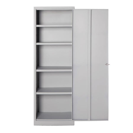 The cabinet is equipped with a reinforced hinged door with key lock and 4 internal sheet metal shelves, removable and adjustable , each with a maximum load capacity of 35 kg evenly distributed .