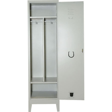 Gli armadi sporco/pulito Mayermoover a 1 posto con profondità 50 cm rappresentano una soluzione solida e funzionale per la gestione ordinata degli indumenti da lavoro. Grazie al divisorio centrale estraibile, permettono di separare efficacemente abiti puliti e sporchi, garantendo igiene in ambienti produttivi, sportivi e sanitari.