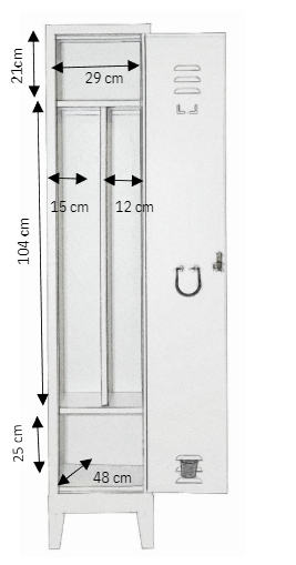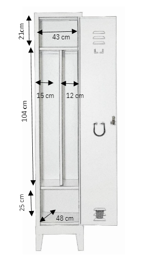 Le ante a battente sono dotate di feritoie di aerazione superiori e inferiori per la ventilazione, e di porta cartellino stampato per l’identificazione rapida dei vani. La serratura a chiave garantisce protezione e riservatezza, mentre la struttura monoblocco assicura lunga durata e stabilità nel tempo.