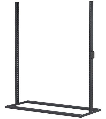 The fully perforated base frame can be closed with a non-perforated panel/shelf to create an additional shelf. The perforations allow for the double-slotted uprights to be positioned centrally or rearward, allowing the cart to be configured based on the components to be installed and the user's needs.