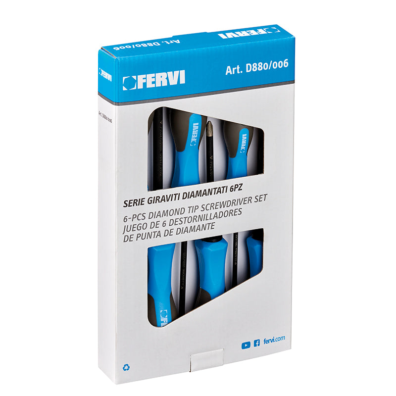 The set of 6 diamond screwdrivers is designed for professional use in workshops, maintenance and industry.