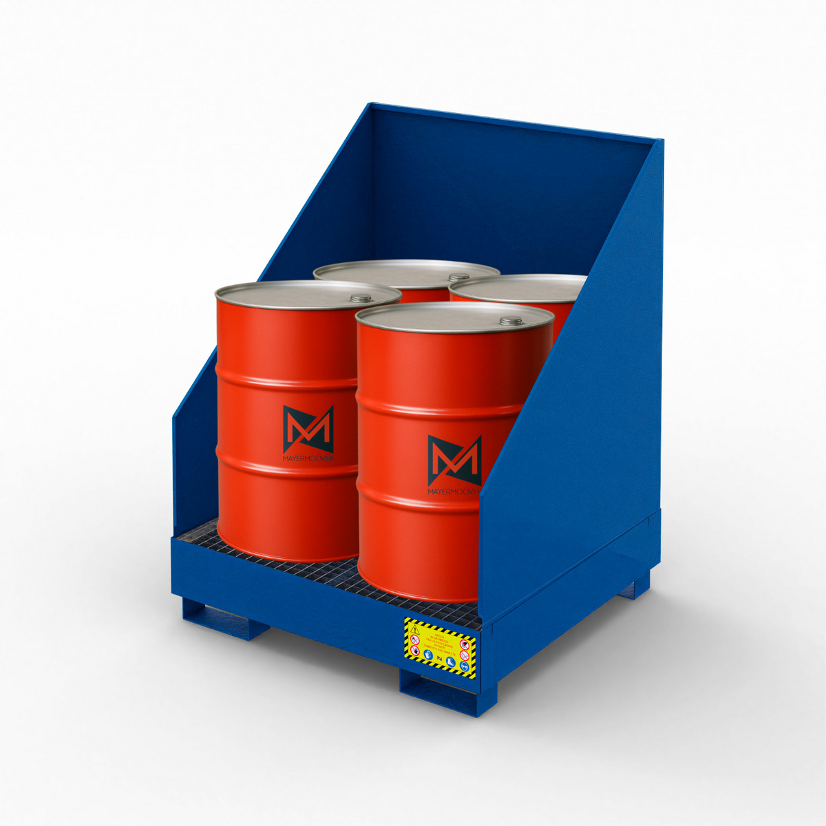 Vasca di raccolta con pareti paraspruzzi per 4 fusti da 200 LT