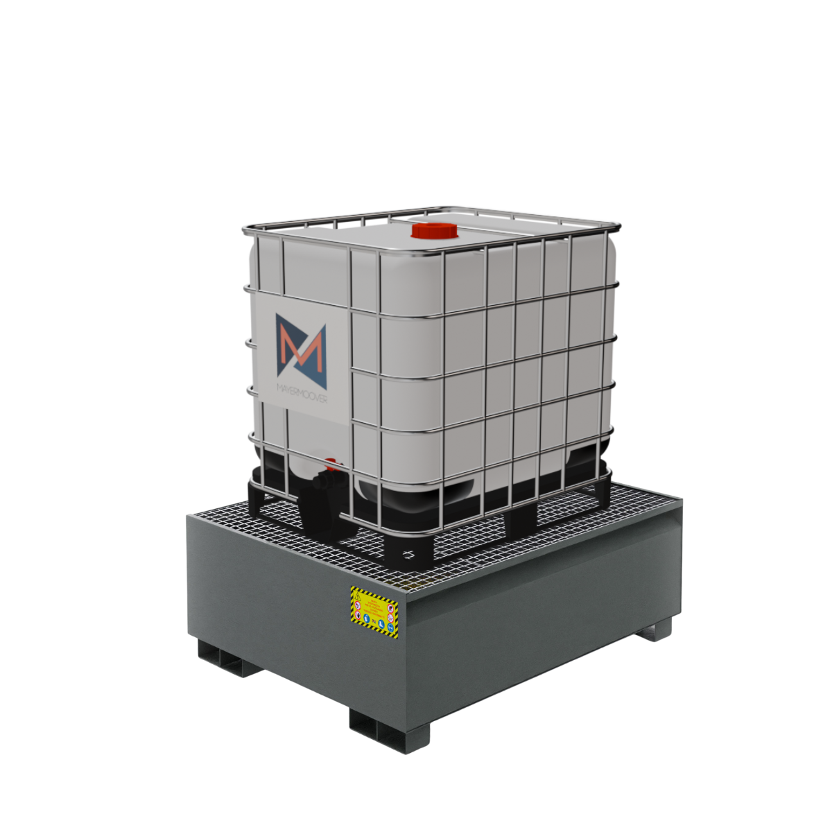 Vasca contenimento liquidi pericolosi dalla struttura in acciaio al carbonio spessore 3 mm (30/10) offre un'elevata resistenza meccanica e una lunga durata anche in ambienti gravosi. Ogni vasca è saldata con precisione e testata elettronicamente per assicurare una tenuta stagna totale. Il grigliato zincato a caldo e pressato, fornito di serie, è progettato per sopportare in piena sicurezza il peso di una cisternetta da 1000 litri.