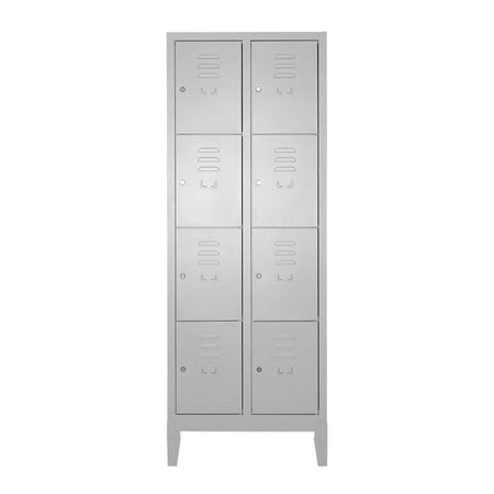Le ante sono rinforzate, dotate di feritoie di aerazione e porta cartellino stampato, con cerniere interne e serratura a chiave per garantire riservatezza e sicurezza. L’interno vuoto consente un’organizzazione flessibile, adattandosi alle esigenze di aziende, scuole, palestre e ambienti collettivi.