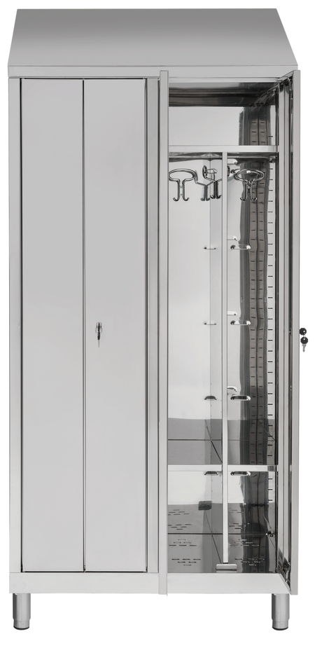 Armadio spogliatoio biposto in acciaio inox con 2+2 ante, progettato per offrire massima praticità e separazione tra indumenti puliti e sporchi per due postazioni individuali. Disponibile in due profondità (40 cm e 50 cm) e realizzato in acciaio inox AISI 304 o AISI 430, rappresenta una soluzione igienica, robusta e durevole, perfetta per ambienti soggetti a controlli HACCP o con esigenze sanitarie stringenti.