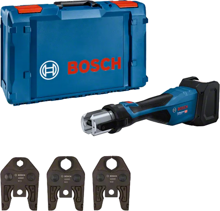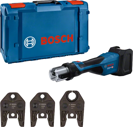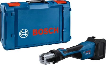 La Pressatrice a batteria GPT 18V-32 Professional può essere utilizzata per tutti i comuni raccordi in metallo e in plastica. Compatibile con le ganasce pressatrici standard Bosch, le ganasce pressatrici standard R-System o le ganasce pressatrici approvate da Bosch, questo utensile può affrontare tubi di diversi diametri. L’ampiezza massima di compressione per i tubi in plastica è 110 mm, per il metallo 54 mm. Compatibile con il Bosch Professional 18V System e con le batterie multimarca dell’alleanza AMPShare.